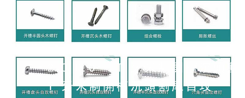 (鐵板牙自攻螺絲) B-2: Plastic Tapping Screw. (塑膠用,自攻螺絲) C: Wooden Screw : 木工螺絲 D: Drywall Screw :水泥墻螺絲 E: Self Drilling Screws鉆尾螺絲(不銹鋼鉆尾螺絲,復(fù)合材料鉆尾螺絲) F:膨脹螺絲,四片膨脹螺絲又